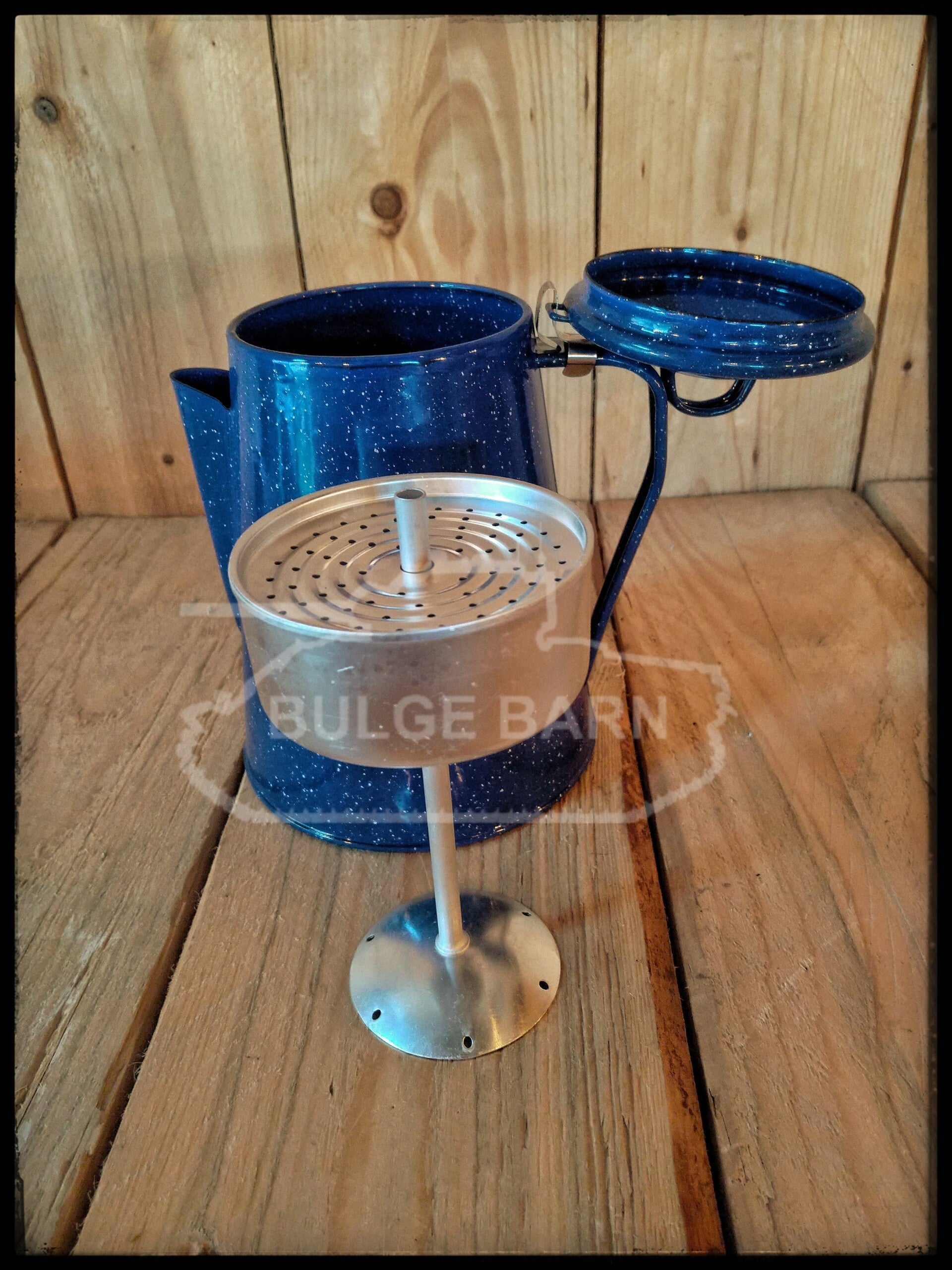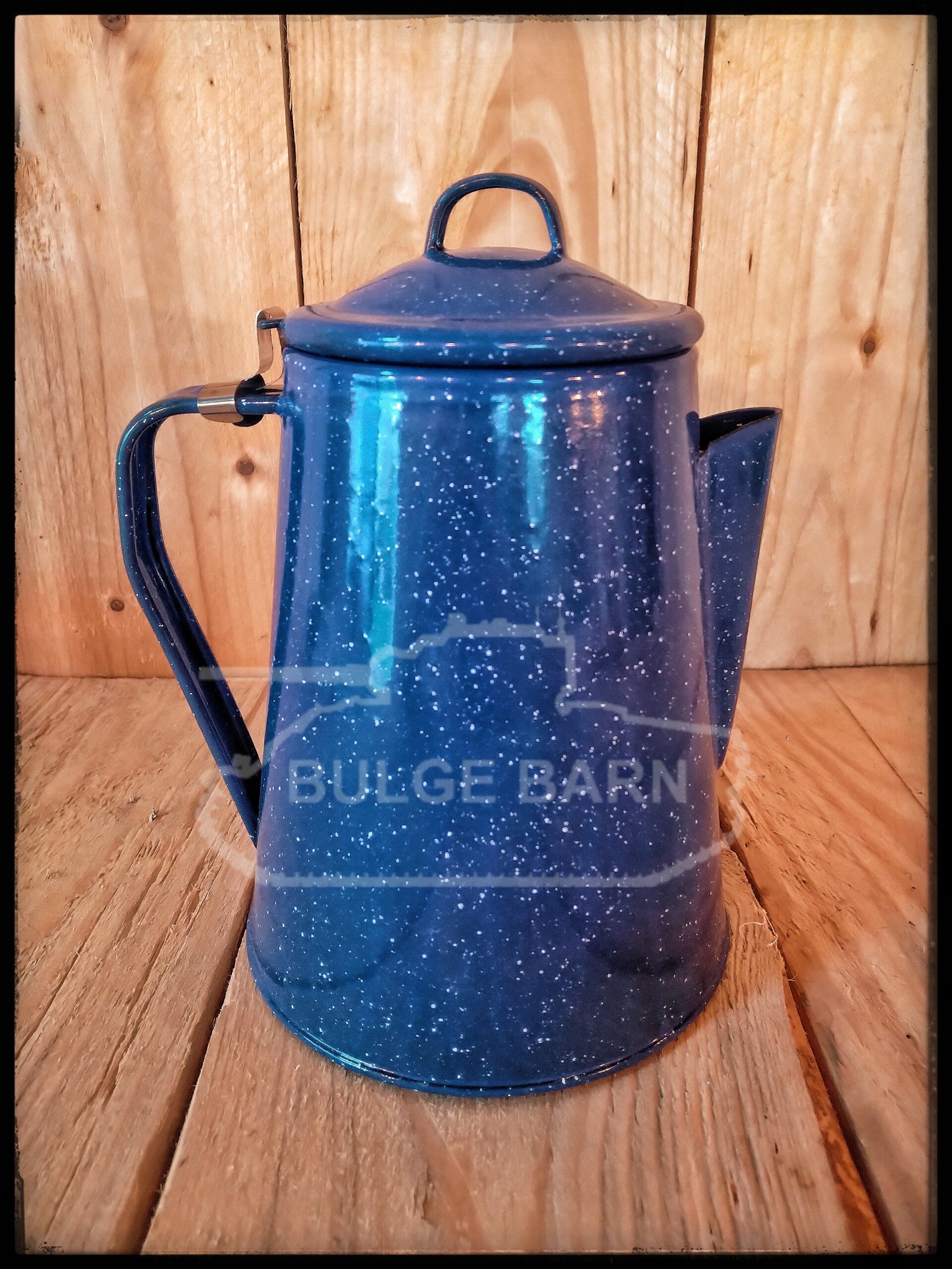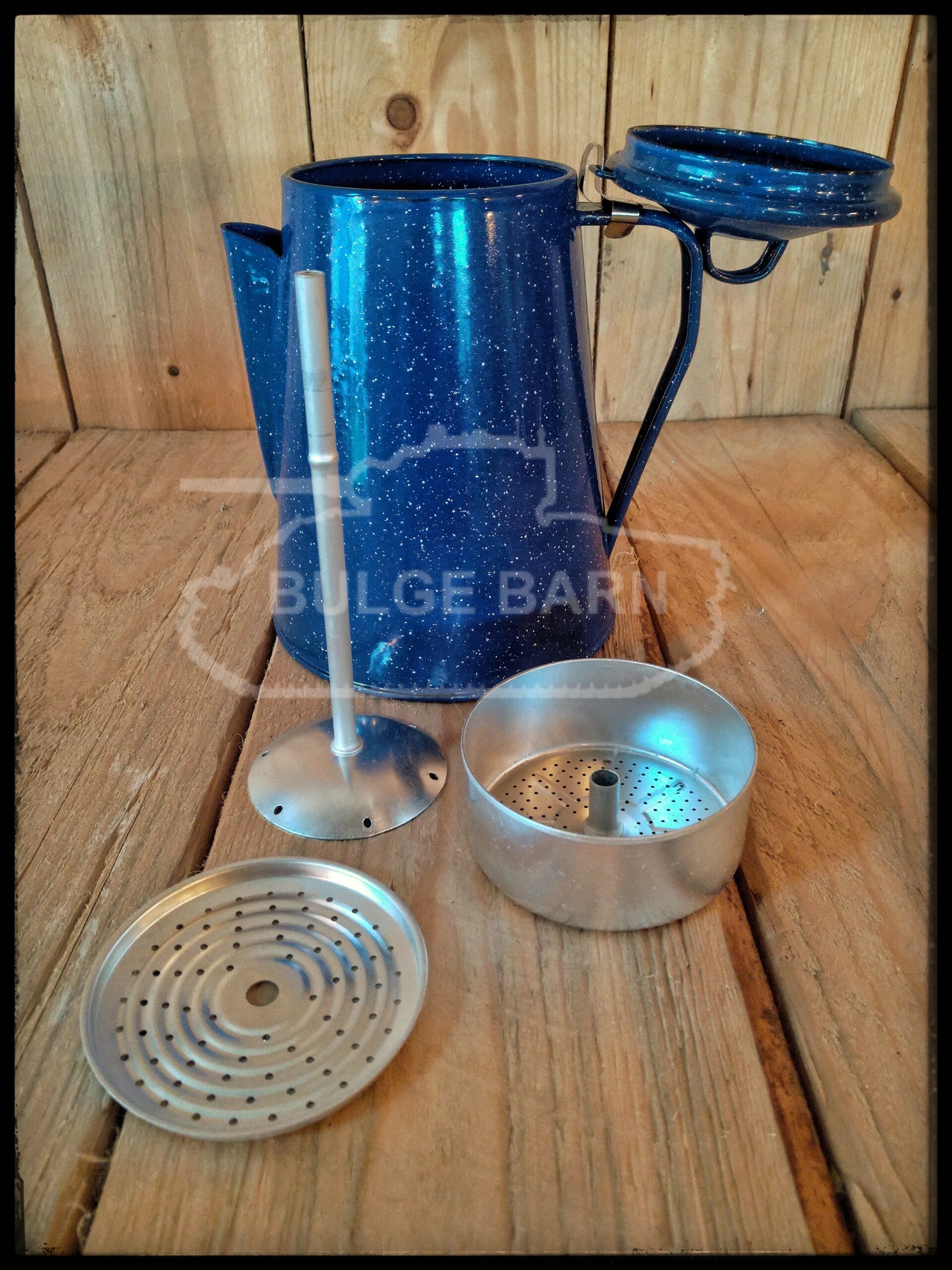 With his blue enamel coated coffee maker ( or coffee brewer ) you can brew your coffee in style!